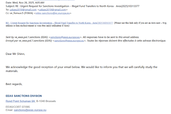 EU와 G7은 대북 제재와 국제 금융 투명성의 핵심 축입니다. 이 사안을 이들 모두에게 공식 접수한 이유는 분명합니다. 국제사회가 더 이상 이 문제를 외면하지 못하도록 만들기 위해서입니다.